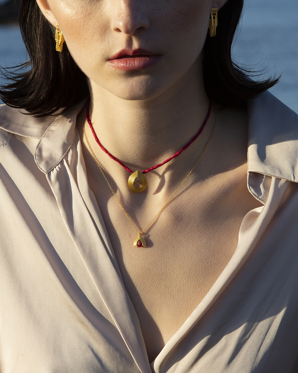 ημί-οβάλ μικρό κρεμαστό με πέτρα