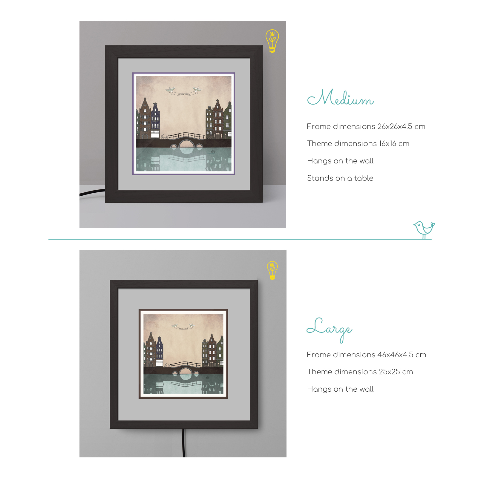 - Επιτοίχιο / επιτραπέζιο φωτιστικό κάδρο με δύο συμπληρωματικές εικονογραφήσεις οι οποίες εναλλάσσονται με το φως