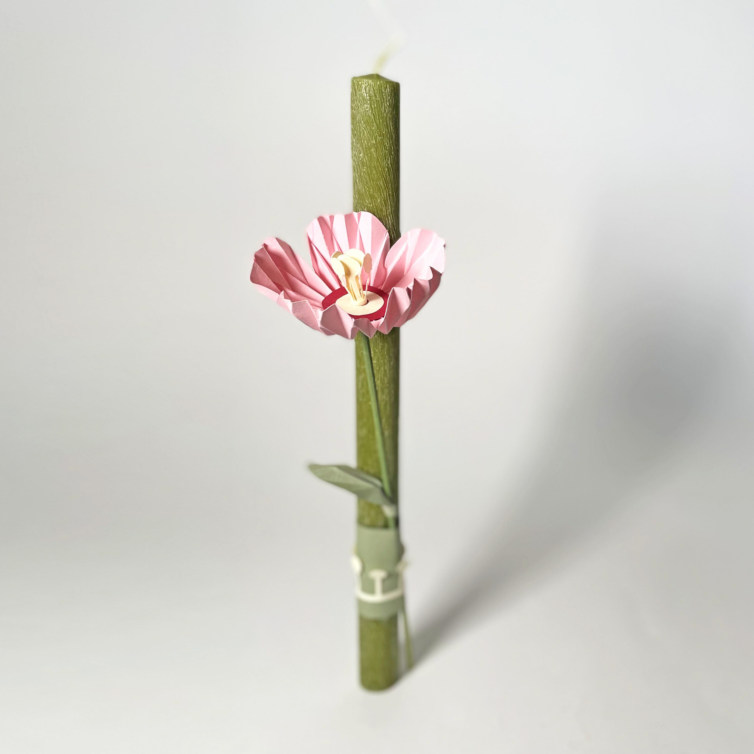 Λαμπάδα με ροζ λουλούδι οριγκάμι